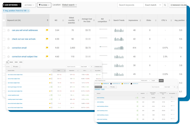 - Find the most effective keywords gathered from 4 different sources: Google Ads Keyword Planner, Google autocomplete, Related searches, "People also ask"