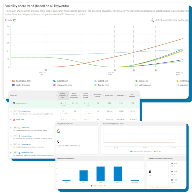 - Get a high level breakdown of the ranking data for your chosen period + compare to any period