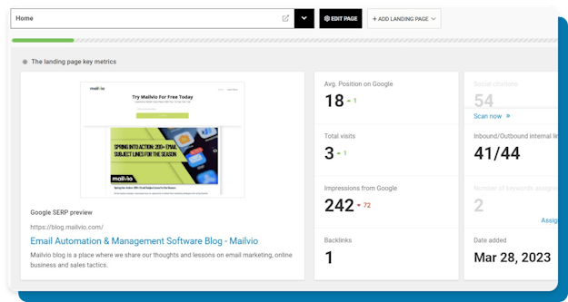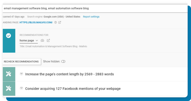 - Get SEO content advice for each analyzed page based on the performance of your competitors