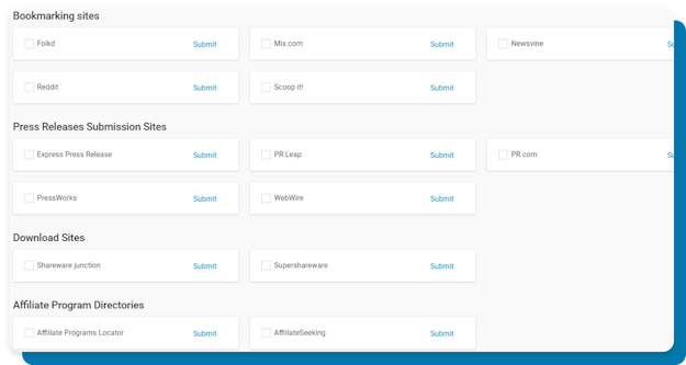 - 85+ niche directories and content submission sites