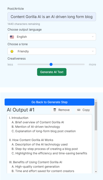 Content Gorilla’s Outline Generator provides you with the best possible outline for your blog posts. This will boost your visibility on search engines. How can the Outline Generator help you? Here’s how: